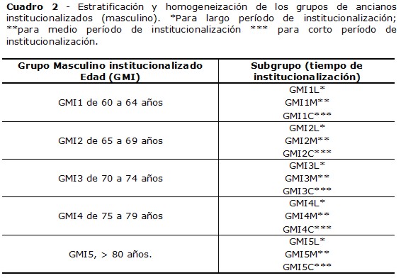 Se trata de una pesquisa descriptiva - analítica - correlativa de delineamiento transversal(3) de la influencia del tiempo de institucionalización en Hogares para Ancianos sobre el balance postural y el riesgo de caer, mensurada a través de escalas de balance postural y por establiometría en ancianos, además de comparativos intrasubgrupos e intergrupos de ancianos residentes en las Hogares para Ancianos del municipio de Tres Ríos/RJ. La muestra será constituida por ancianos residentes en las Hogares para Ancianos del Municipio de Tres Ríos/RJ, seleccionados de forma no probabilística, ateniendo a los criterios de elegibilidad. Tras ser seleccionados, los ancianos serán sometidos a la evaluación del balance postural a través del método Berg Balance Escale y por el análisis estabilométrico, mensurados a través de la variación del Centro de Presión en una plataforma de fuerza. El presente proyecto fue aprobado por el Comité de Ética en Pesquisa del Hospital Universitario Antonio Pedro, sub parecer n° CAAE: 0375.0.258.000-11. La muestra será estratificada y homogeneizada por sexo, faja etaria y tiempo de institucionalización conforme demuestran los cuadros 1 e 2.