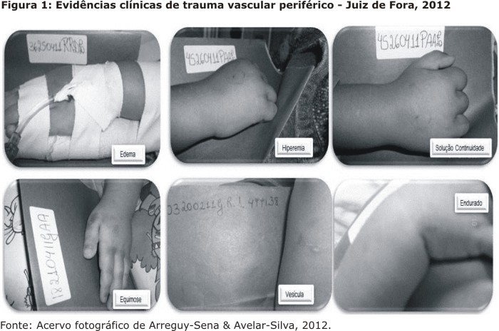 Resultados: Dentre as 338 punções, 53,3% apresentaram pelo menos uma evidência clínica de trauma caracterizada por: dor (30,1%), alteração da coloração da pele (18,6%), integridade da pele (47,7%), capacidade funcional (6,2%) e temperatura local (14,2%).
