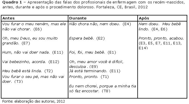 Desse modo, este estudo objetivou analisar a comunicação verbal e não verbal de profissionais de enfermagem com RN, durante a punção arterial e do calcâneo, na perspectiva da promoção da saúde.