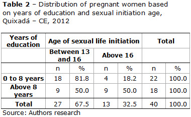 Table 2 shows the intersection of data on schooling and the sexual initiation age.