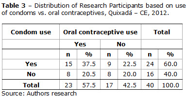 As for contraceptive methods, Table 3 shows the participants’ data regarding the use of condoms and oral contraceptives.
