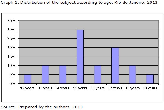 Graph 1 shows the distribution of subjects according to age, in which it can be observed that the participants are between 12 and 19 years of age.