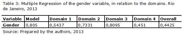 Table 3 demonstrates that no domain explains the gender variable.