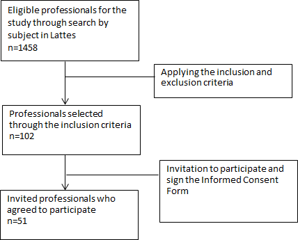 From the 102 selected professionals, 51 agreed to participate, signed the Informed Consent and became the judges of the study.