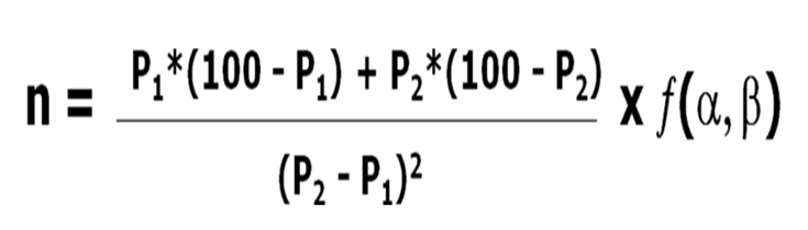 Figura 1 – Fórmula para cálculo de muestra, según el análisis estadístico de Pocock (1983)